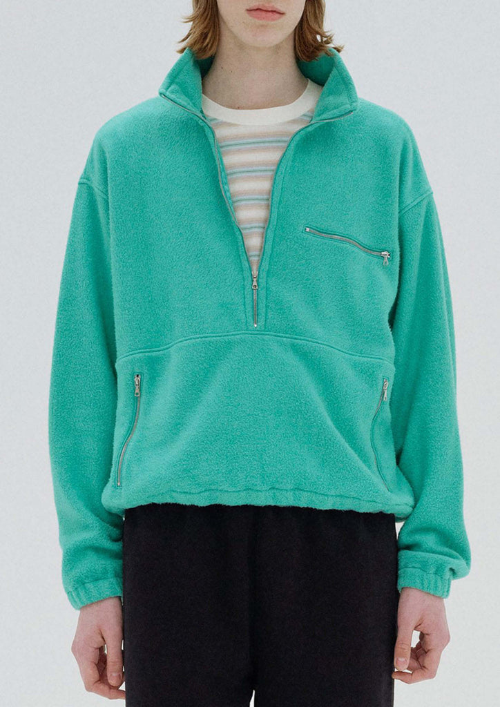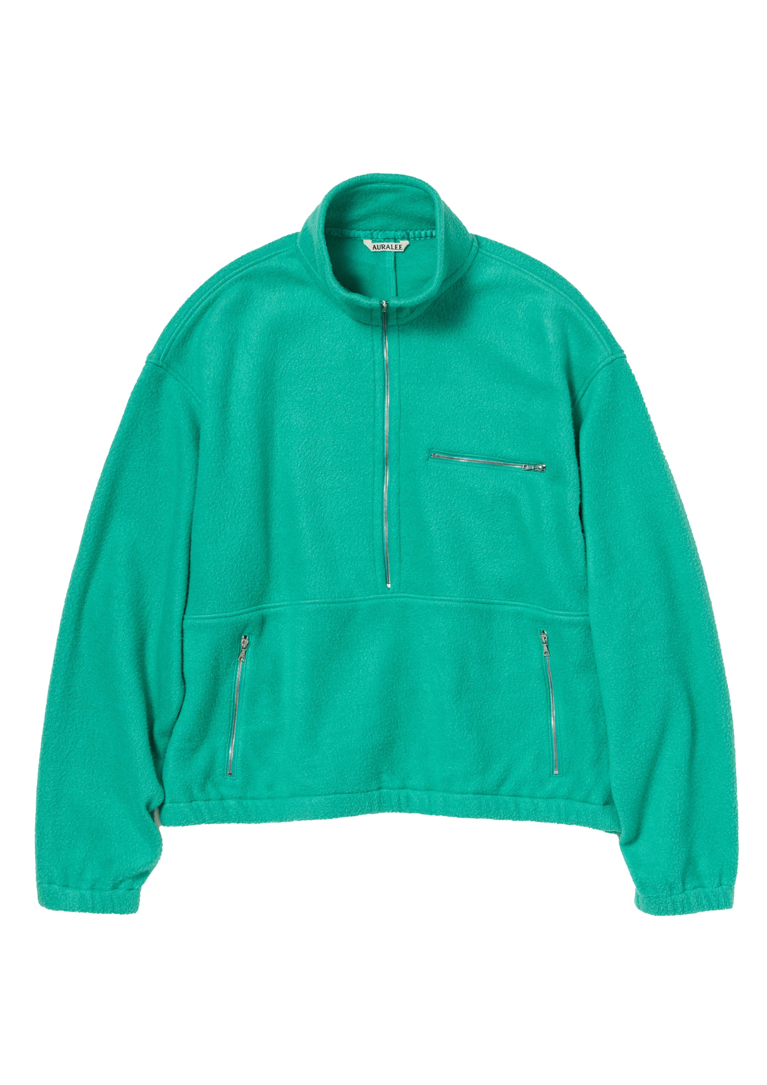 AURALEE - PURE SILK COMFORT FLEECE HALF ZIP P/O JADE GREEN