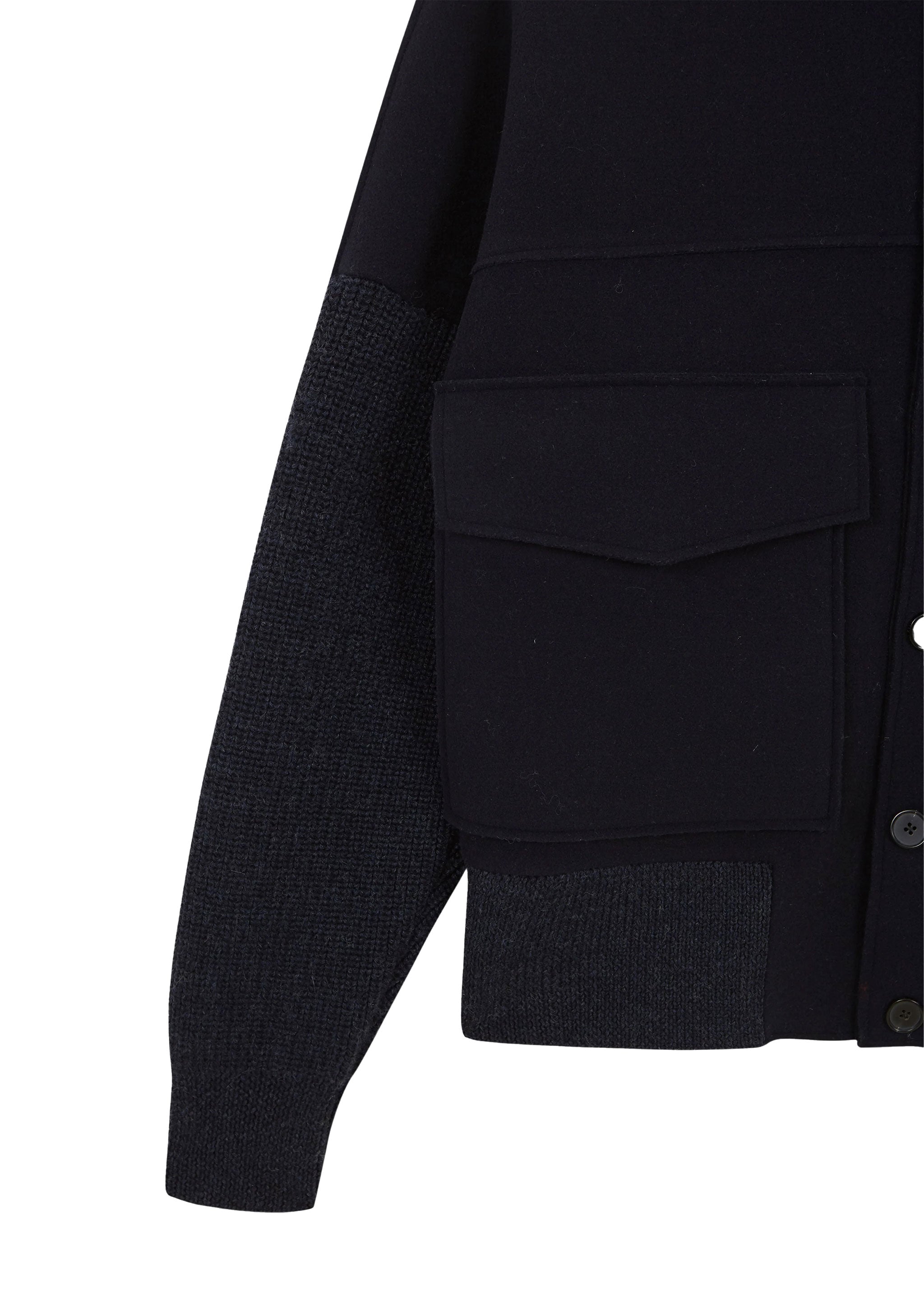 OUR KNIT/FELT JACKET FITS TRUE TO SIZE WITH AN OVERSIZE SHAPE.