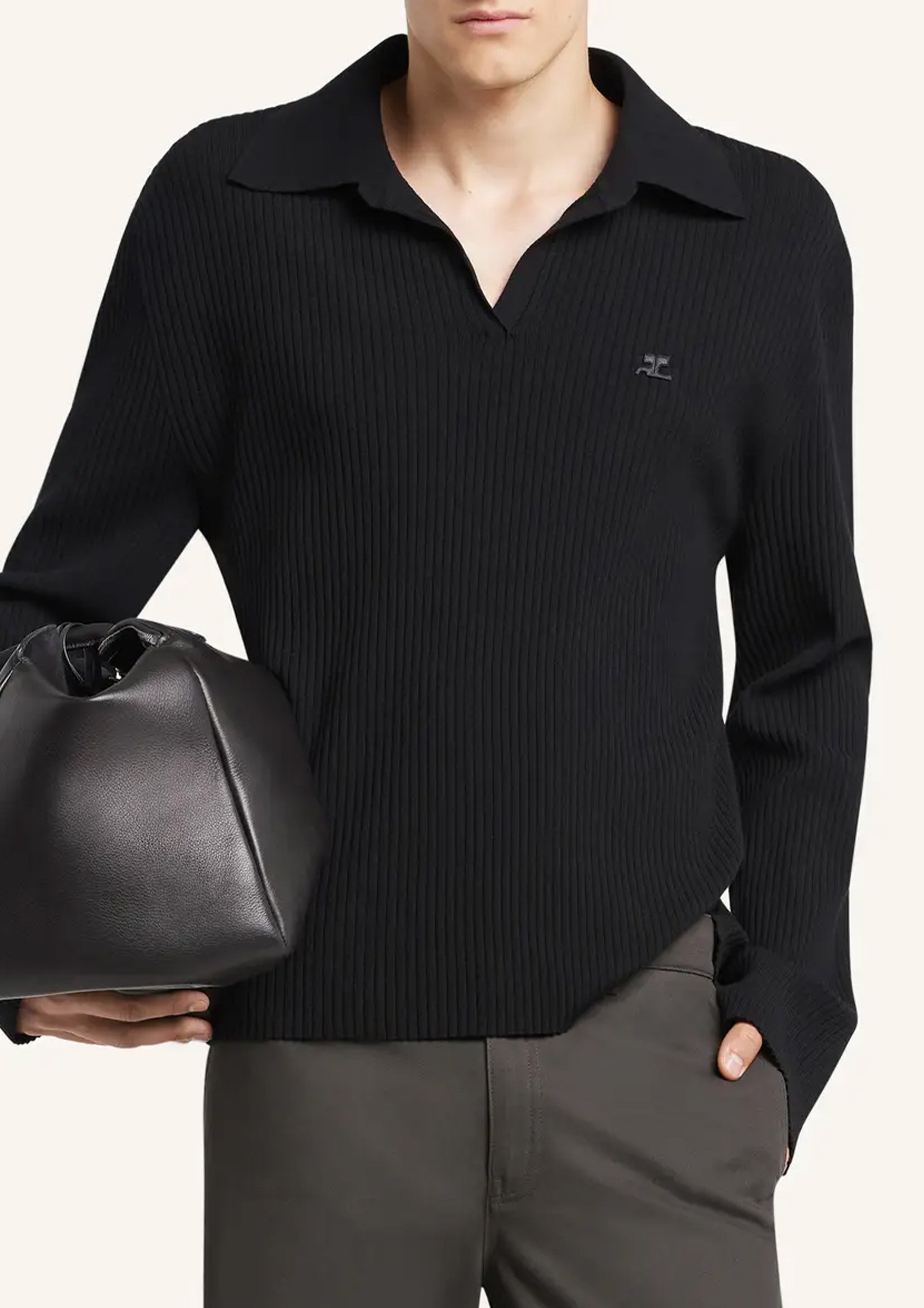 Long sleeved ribbed polo shirt with embroidered AC logo on the chest.