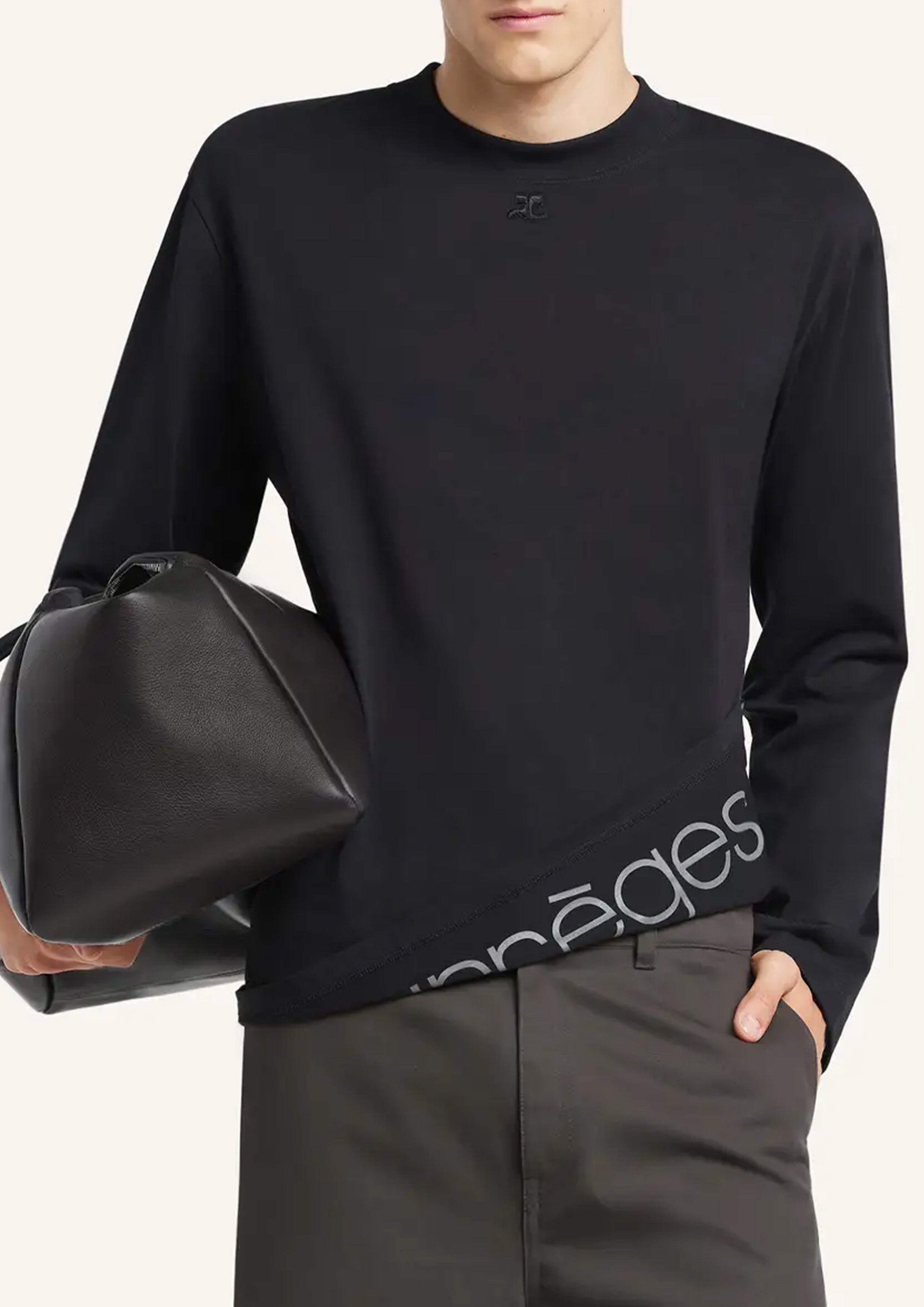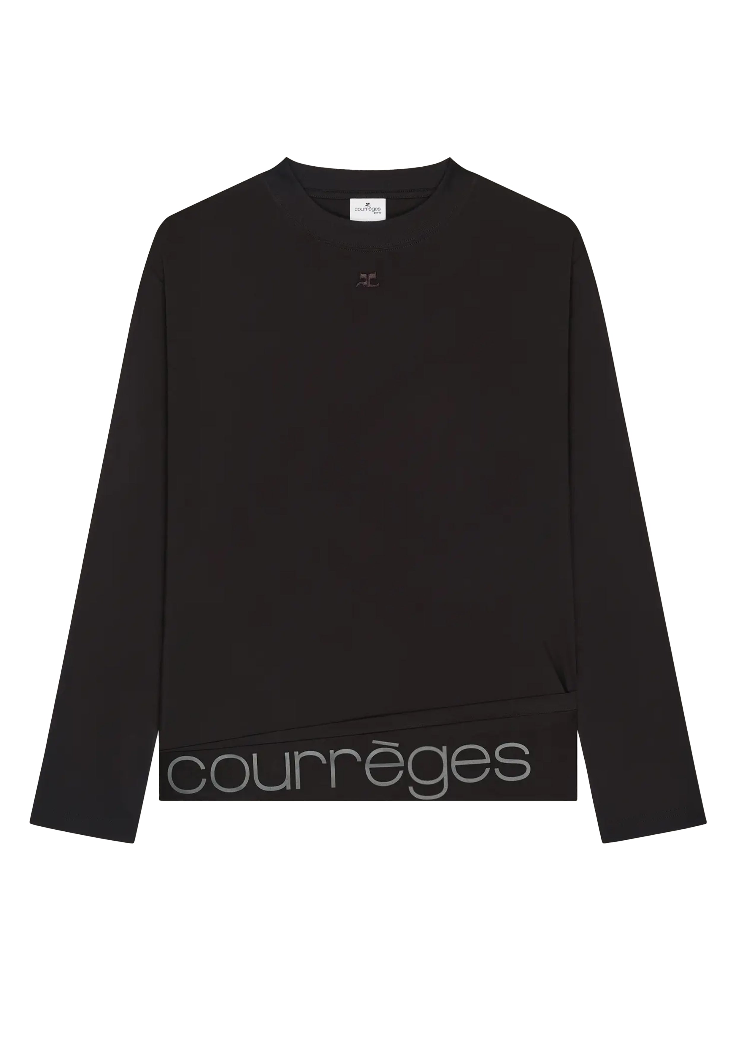 COURRÈGES - T-SHIRT TWISTED LOGO LONG SLEEVES BLACK