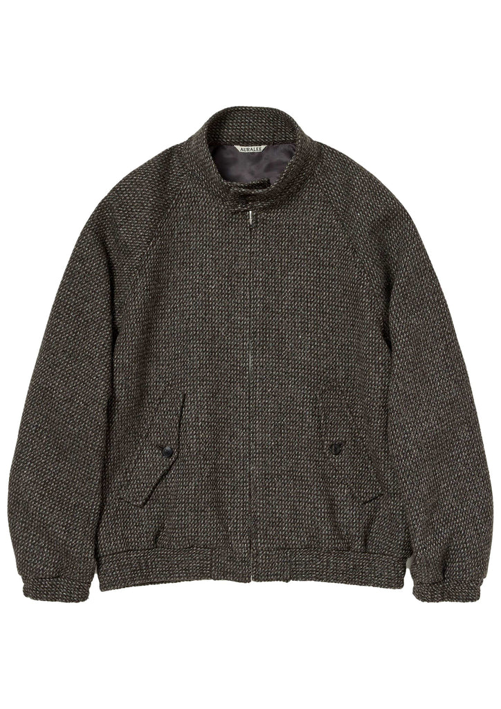 AURALEE - ALPACA WOOL SILK TWEED ZIP BLOUSON GRAY BROWN HAIRLINE