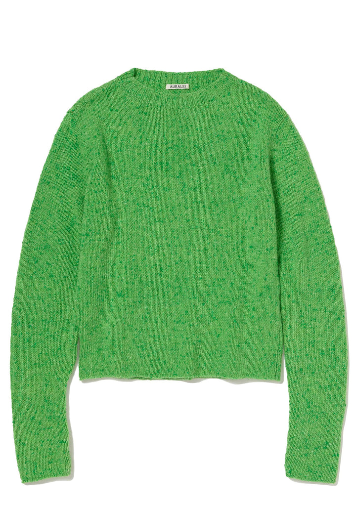 AURALEE - CASHMERE MELANGE KNIT P/O TOP GREEN
