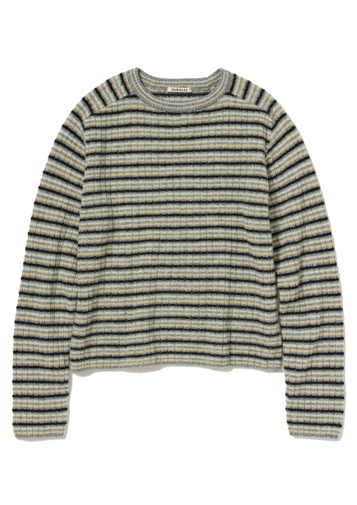 AURALEE - SHETLAND WOOL CASHMERE RIB KNIT P/O GRAY STRIPE