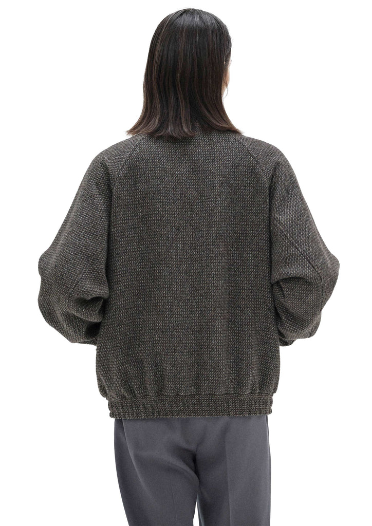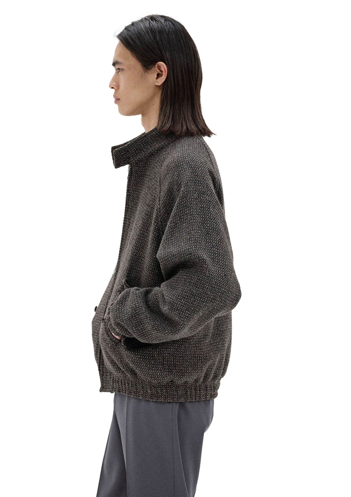 AURALEE - ALPACA WOOL SILK TWEED ZIP BLOUSON GRAY BROWN HAIRLINE