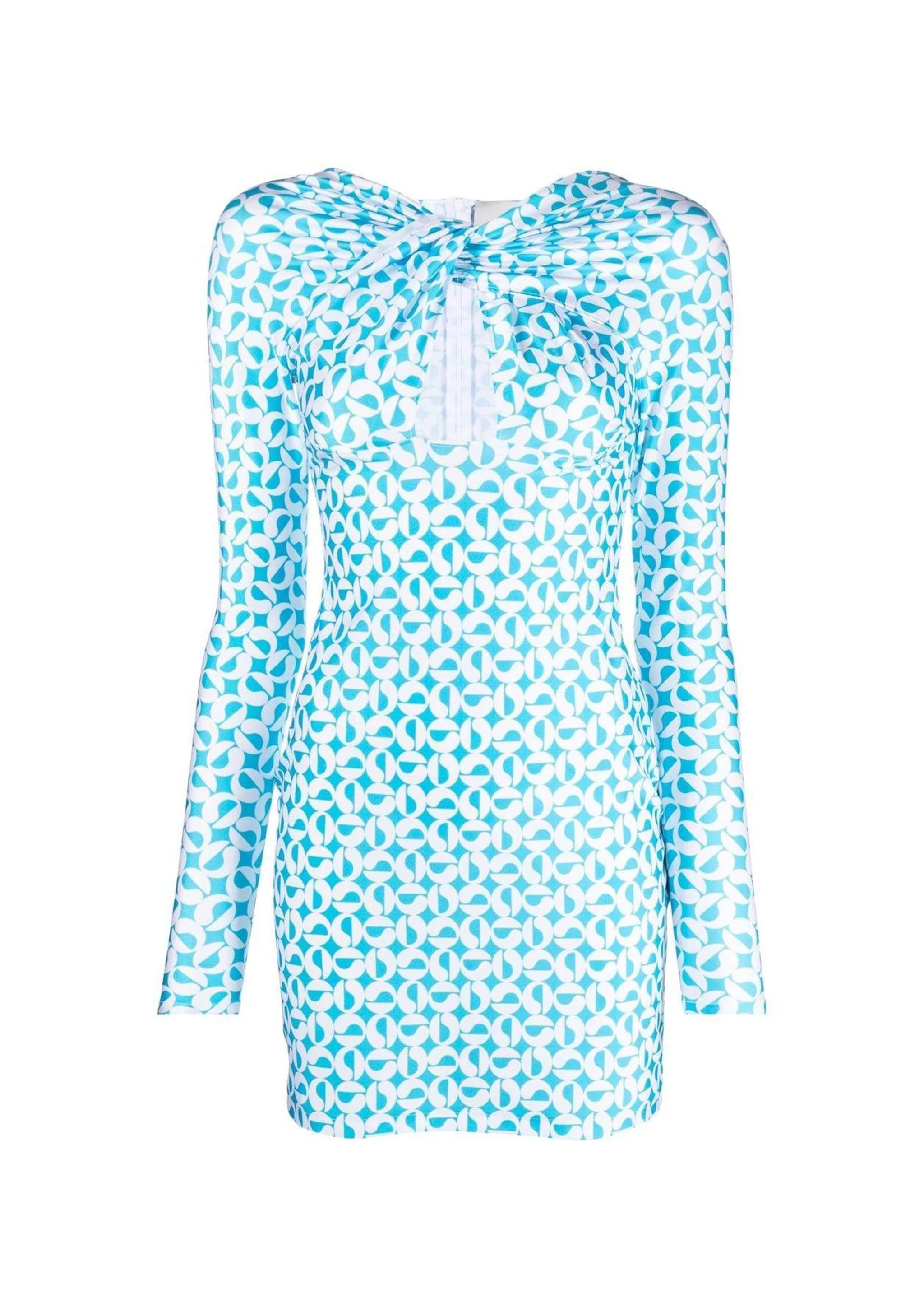 COPERNI - TWISTED CUT-OUT JERSEY DRESS AZUR/WHITE