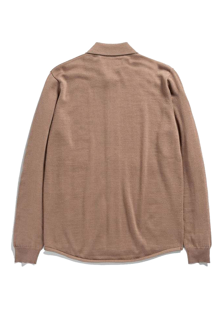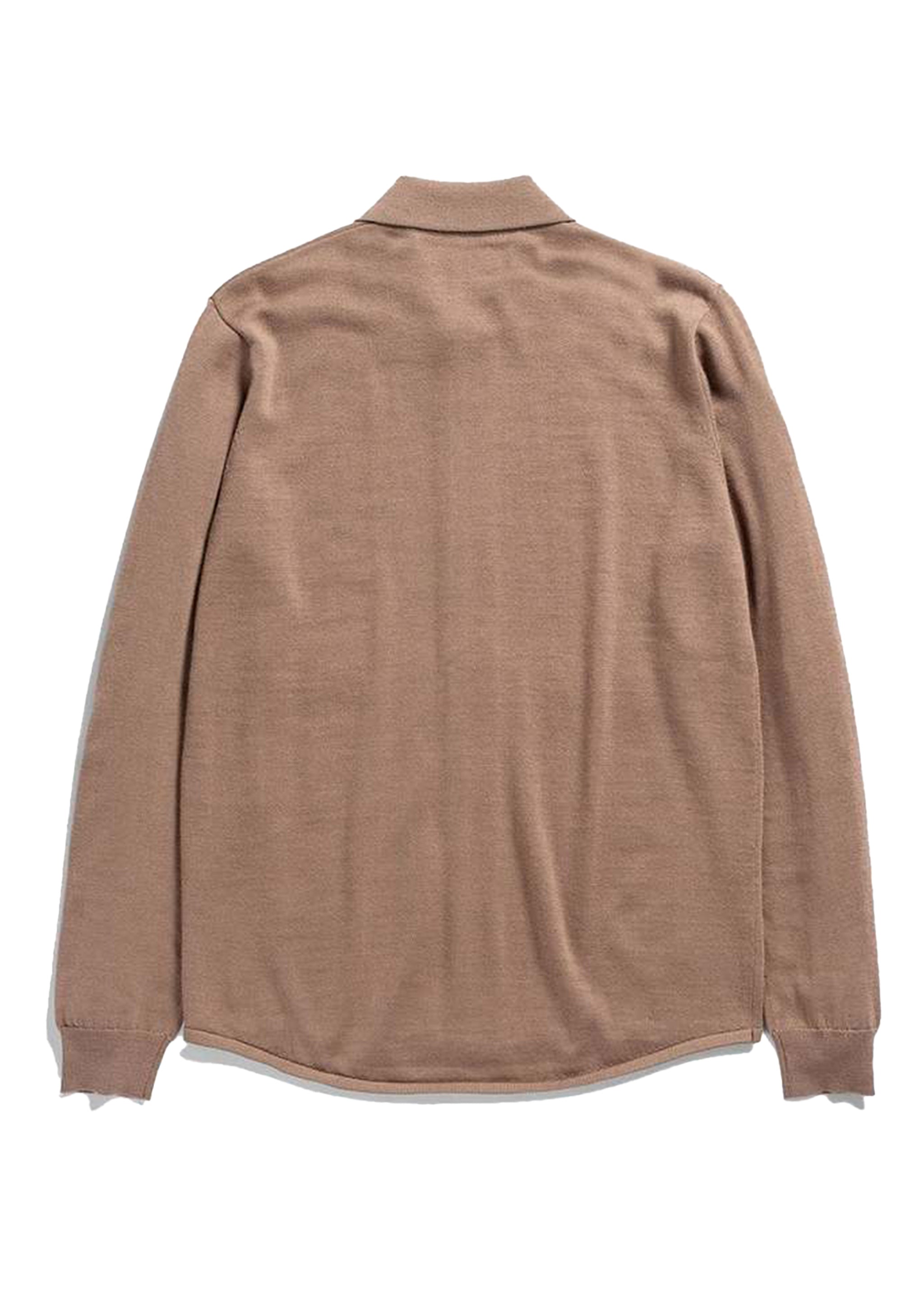 The knitted shirt is designed as a layering piece and features set-in sleeves, a knitted ribbed collar, single ribbed cuffs and a curved hem in interlock. The yarn is developed for easy care and is machine washable.