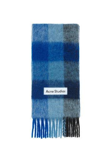 ACNE STUDIOS - MOHAIR CHECKED SCARF DARK NAVY/BLACK/BLUE