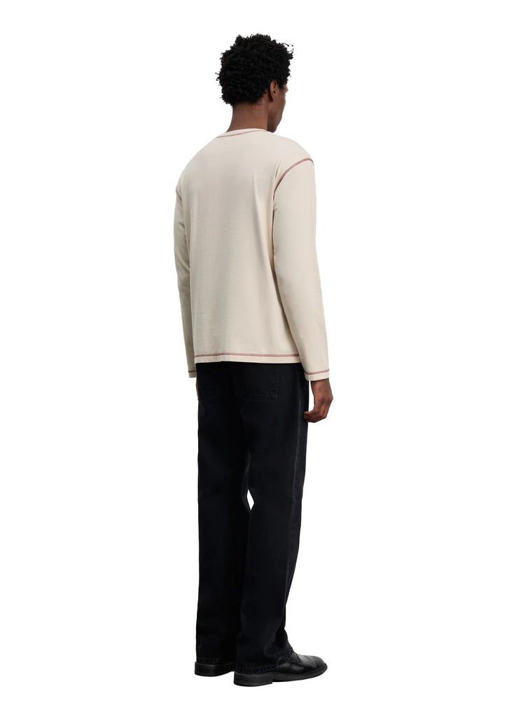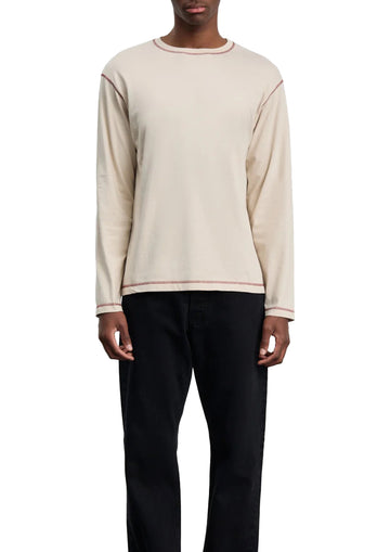 Cut for a comfortable fit, our long-sleeved organic cotton jersey T-shirt has a soft handle and is detailed with a contrast-colored flatlock stitch at the neck and hem that breaks the mold. Wear yours beneath an open formal shirt or a pair of jeans.