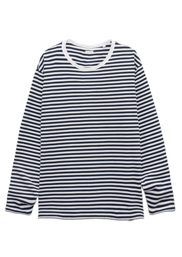 NANAMICA - COOLMAX STRIPE JERSEY L/S TEE NAVY x WHITE
