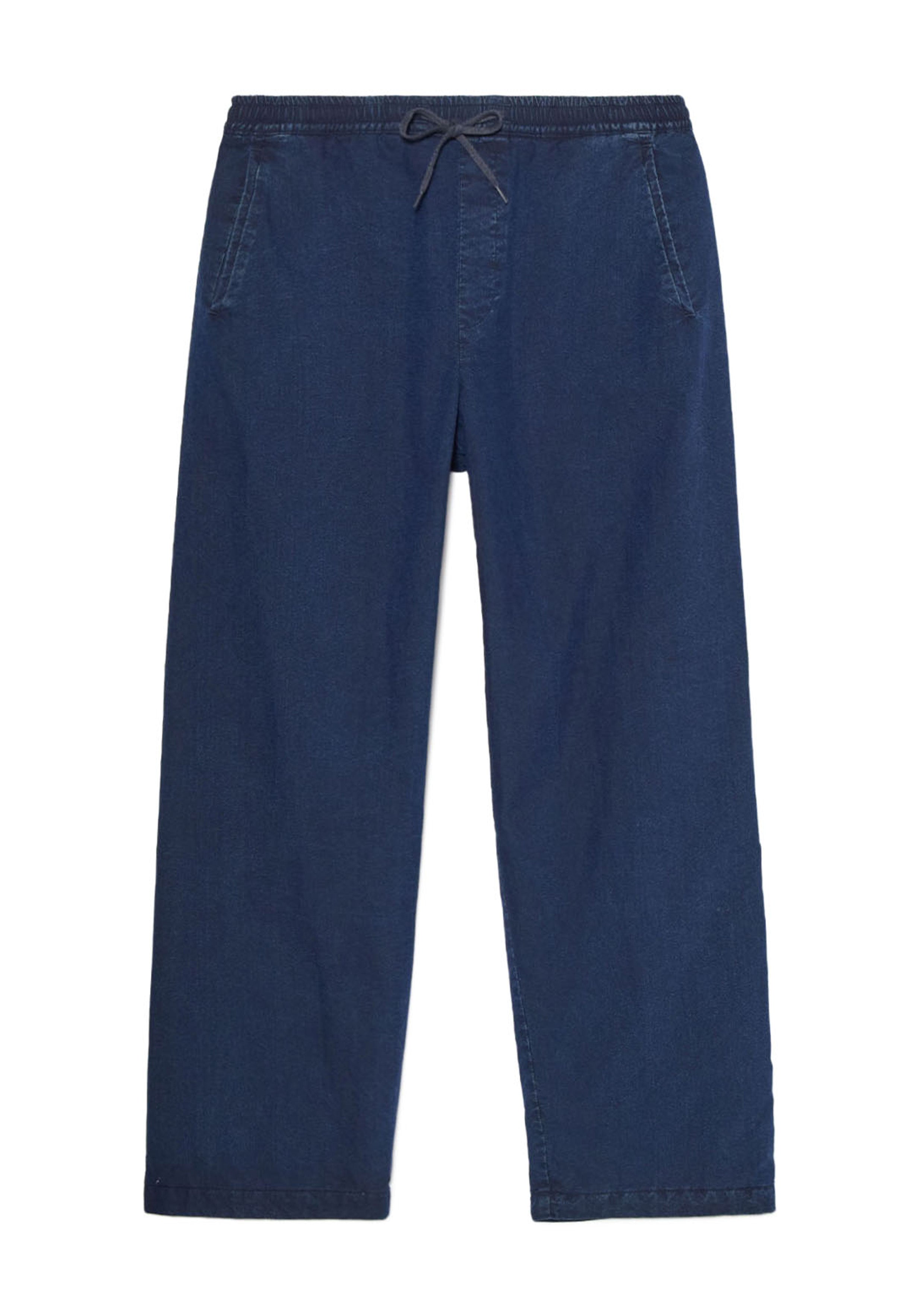 Made from washed indigo cotton-nylon, they have a soft, textured feel that develops character over time.