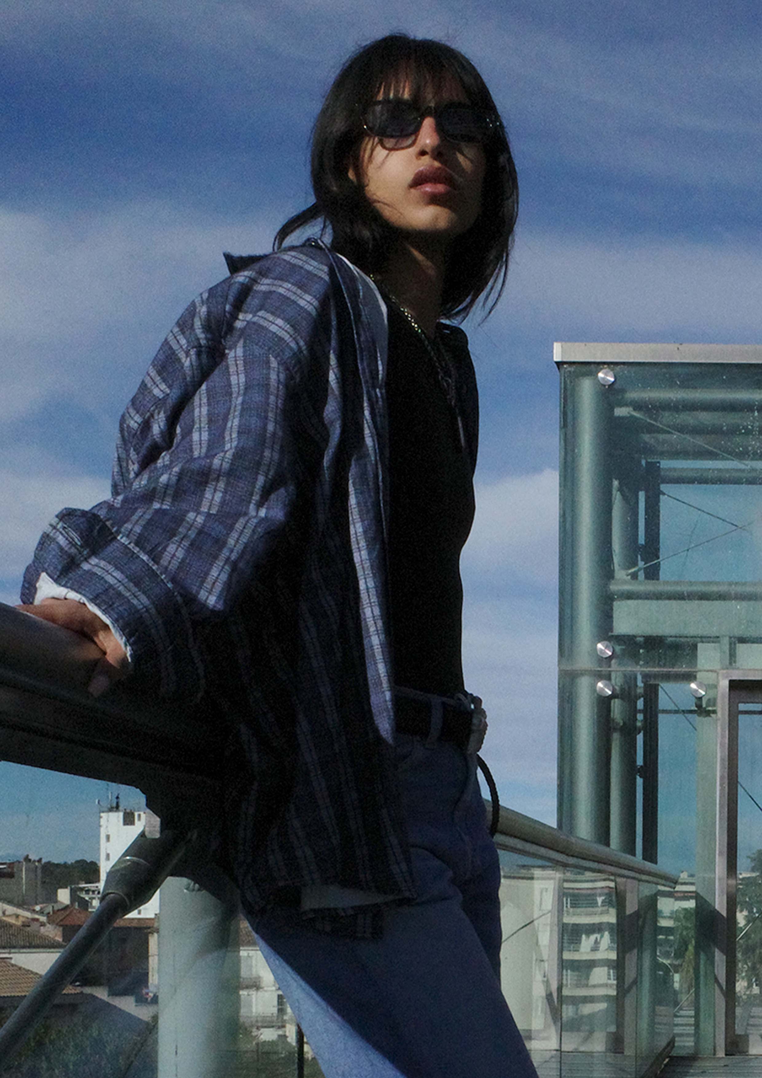 Our Borrowed Shirt in Check Please Print. Produced in a Portuguese cotton fabric with our Check Please pattern, the men's Borrowed Shirt has an oversized fit and features mother of pearl buttons, mitered cuffs, a curved hem and a single chest pocket.