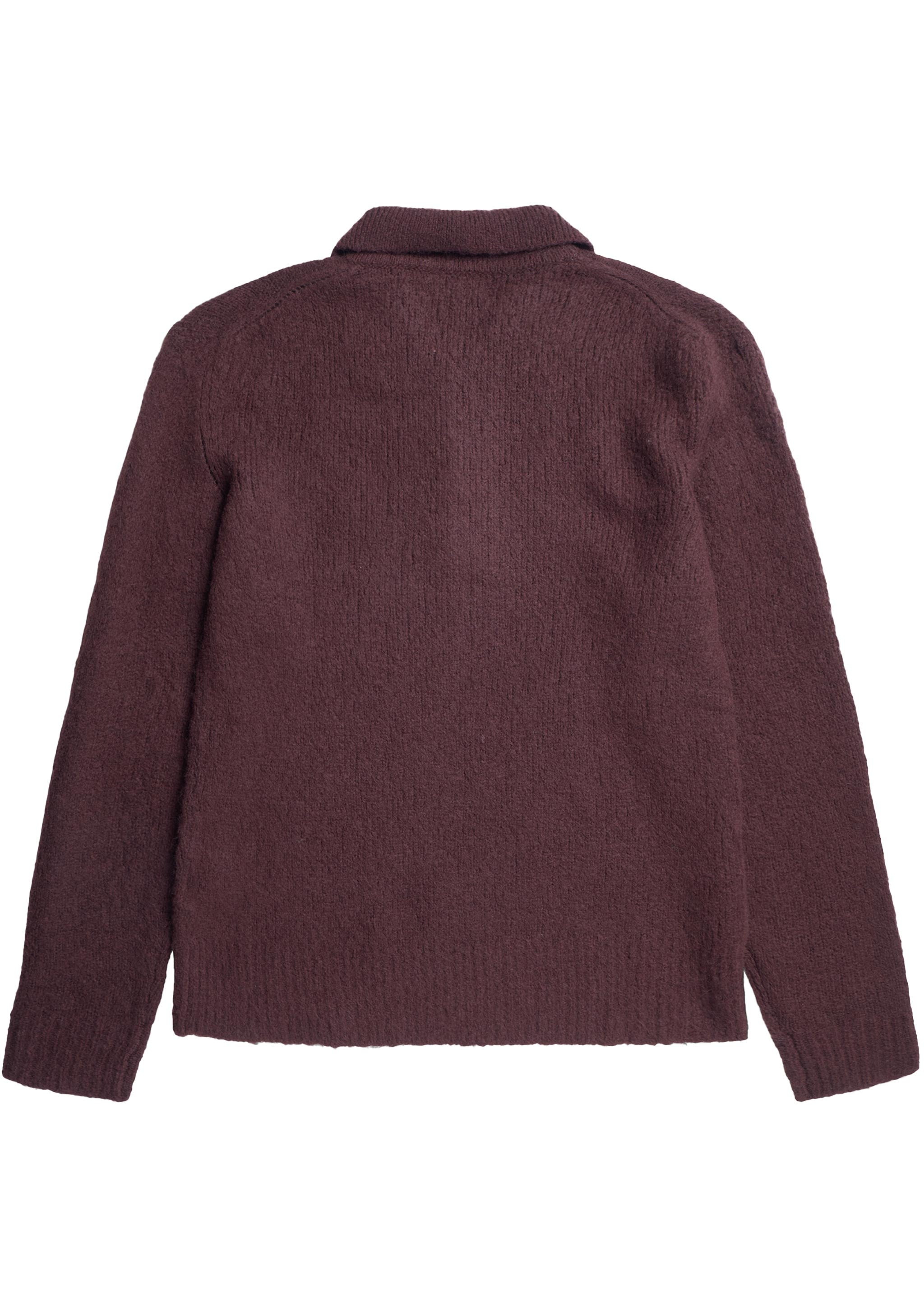 A polo knitted from an alpaca/wool blend in plain jersey. The relaxed fitting style is constructed with set-in sleeves, 2 button placket and finished with ribbed cuffs and hem.