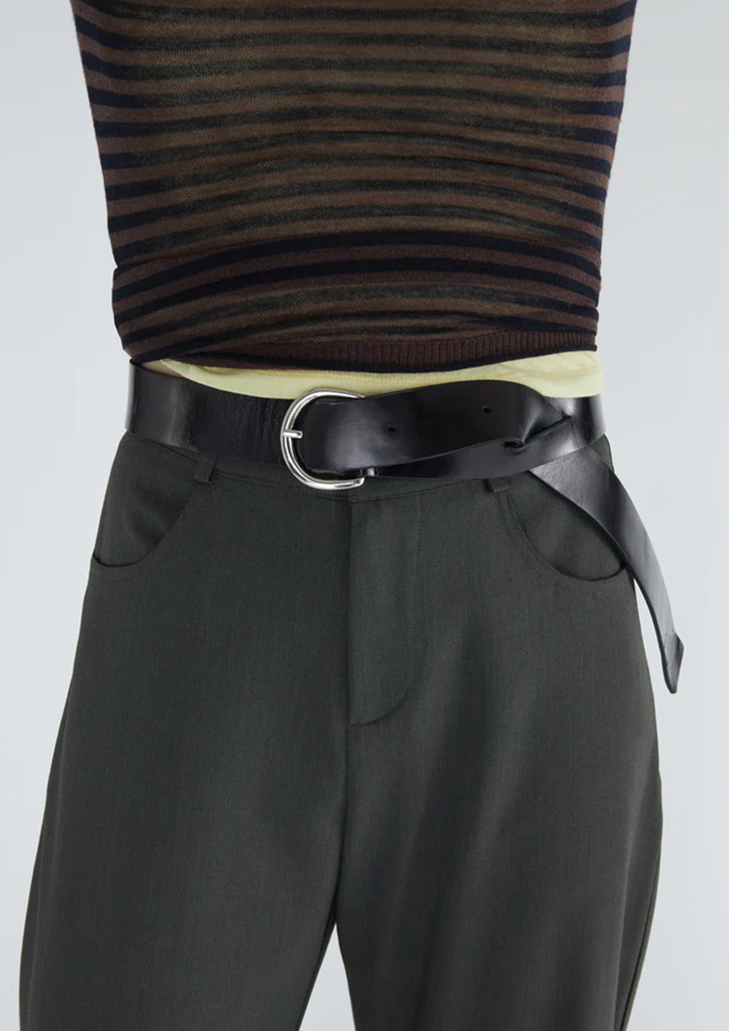 Double-layer leather 4 cm wide belt, without a belt loop.
