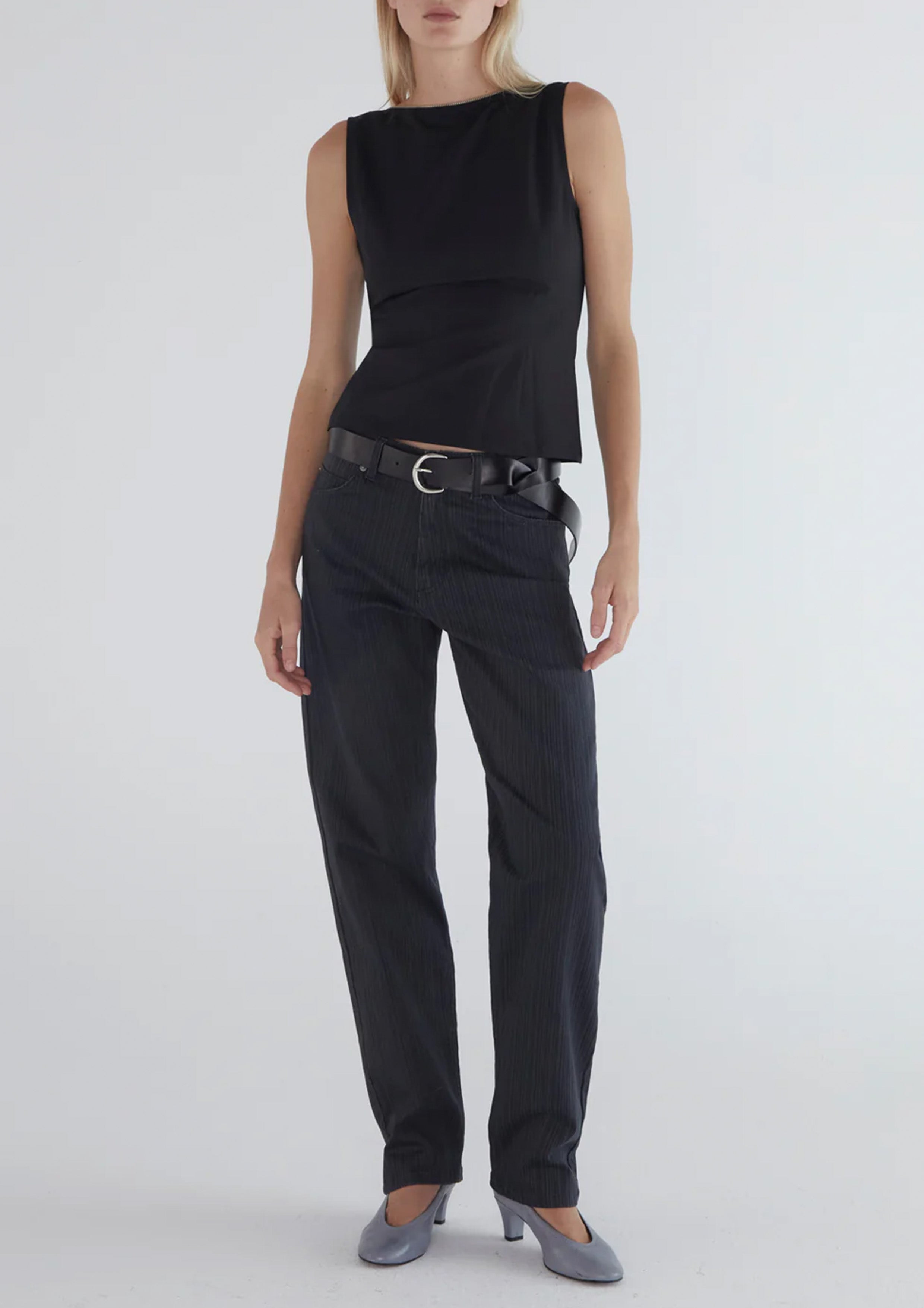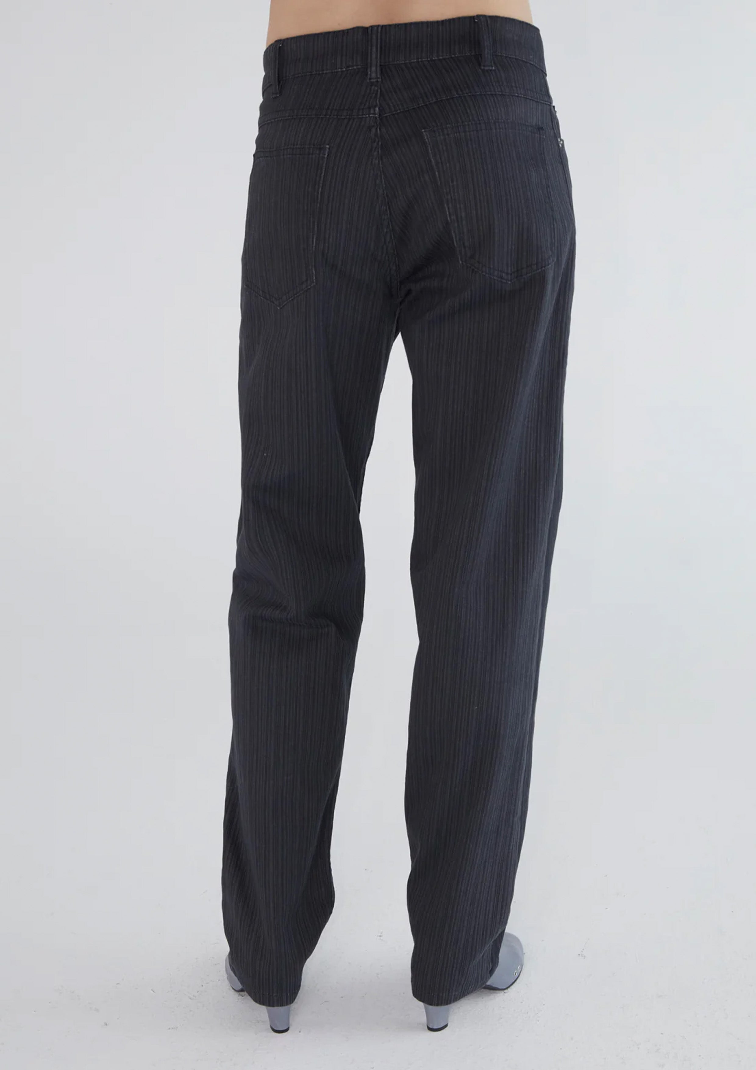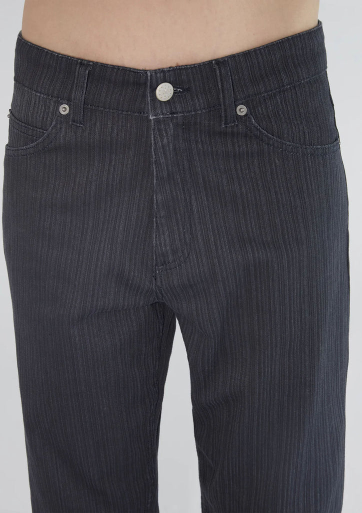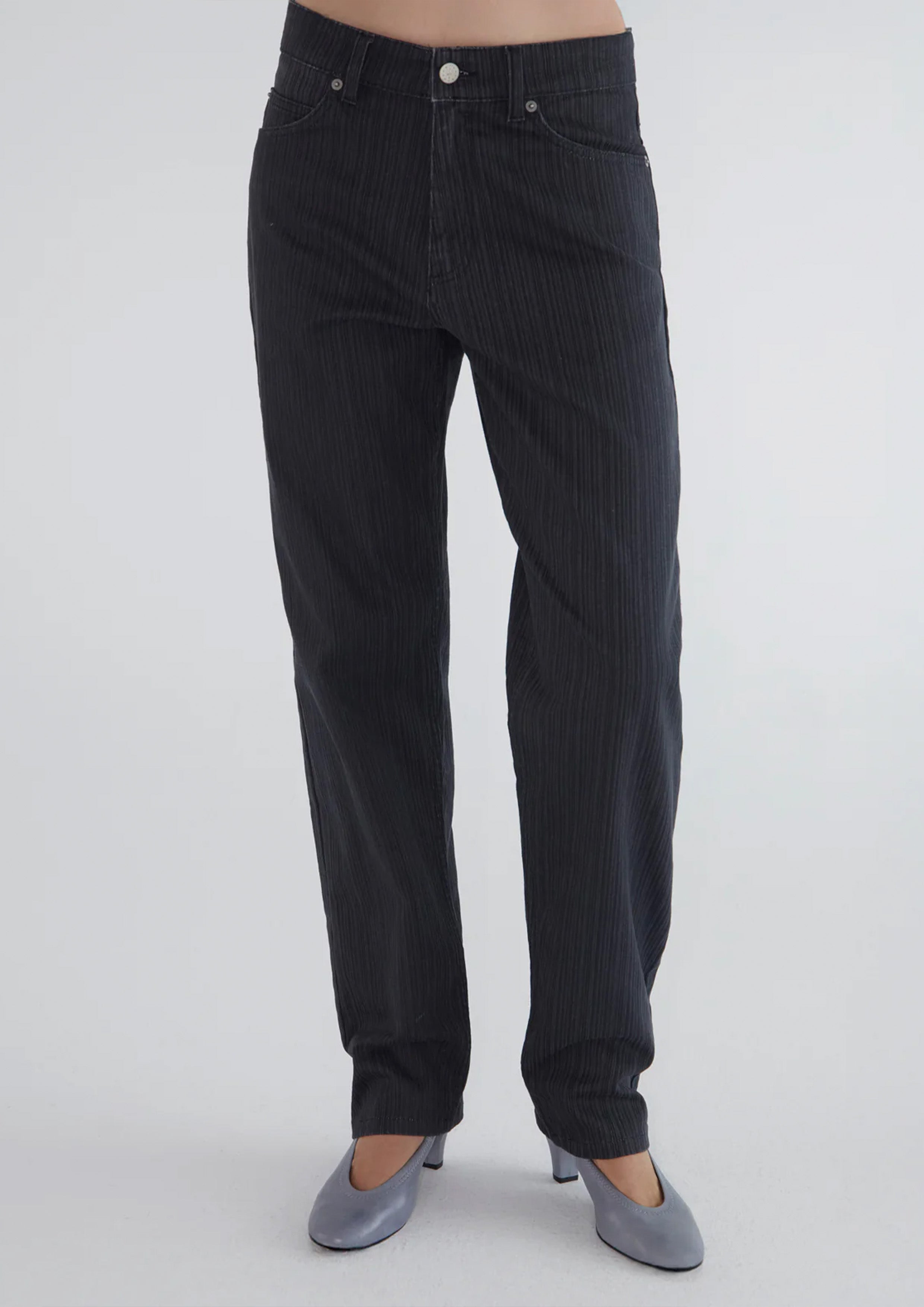 Long striped five-pocket trousers made of cotton with a slight stretch. Loose at the waist and slightly more fitted towards the hem.
