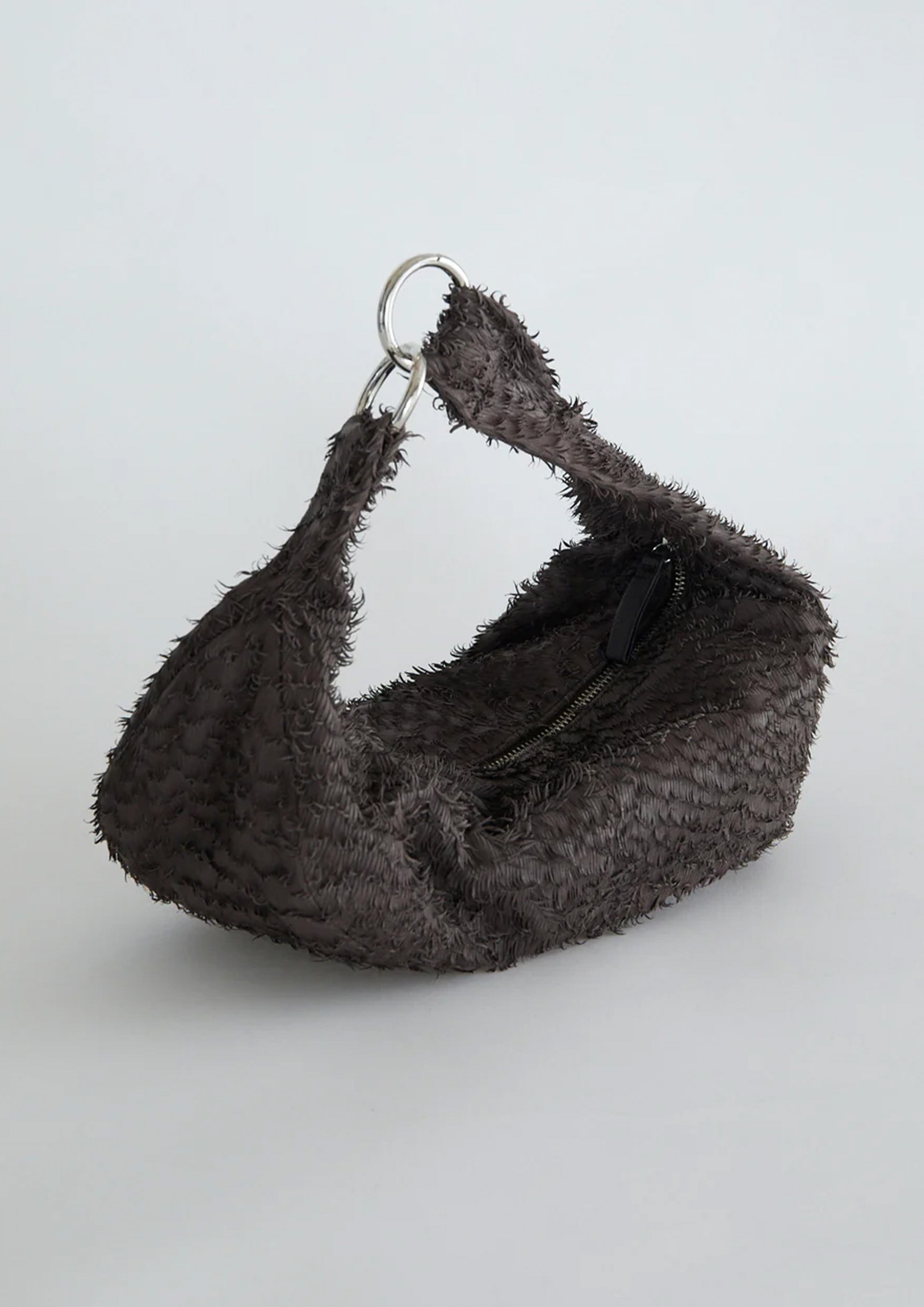 Various handle options: flat and long for crossbody wear or without the extra flat handle attached through the rings for shoulder wear.