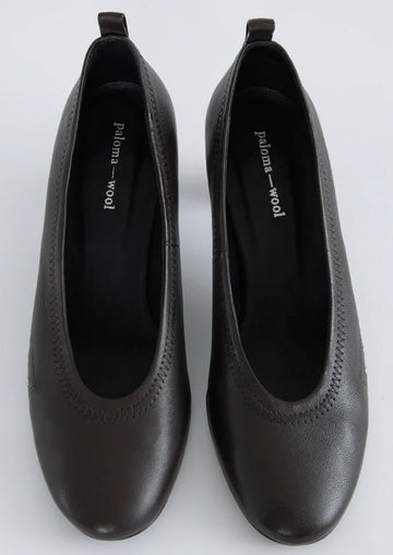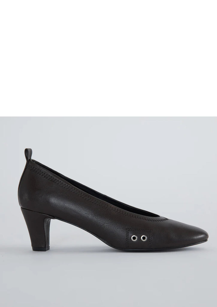 Pump with 5cm heel, metal eyelet details and a leather pull tab.