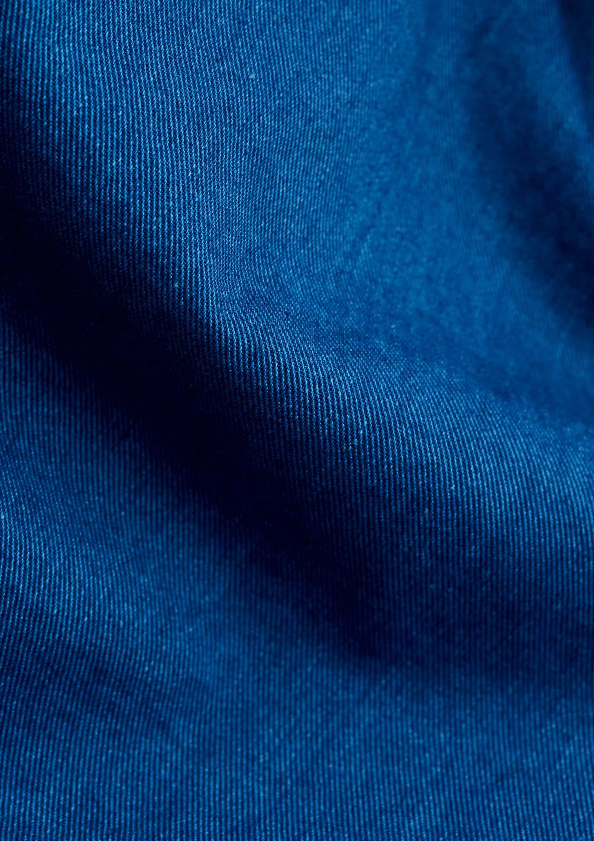 FABRIC: This cotton fabric is woven in a classic plain weave, offering a smooth and breathable texture. The soft indigo tone carries subtle depth and richness, while a gentle wash lends it a relaxed, vintage-inspired handfeel.