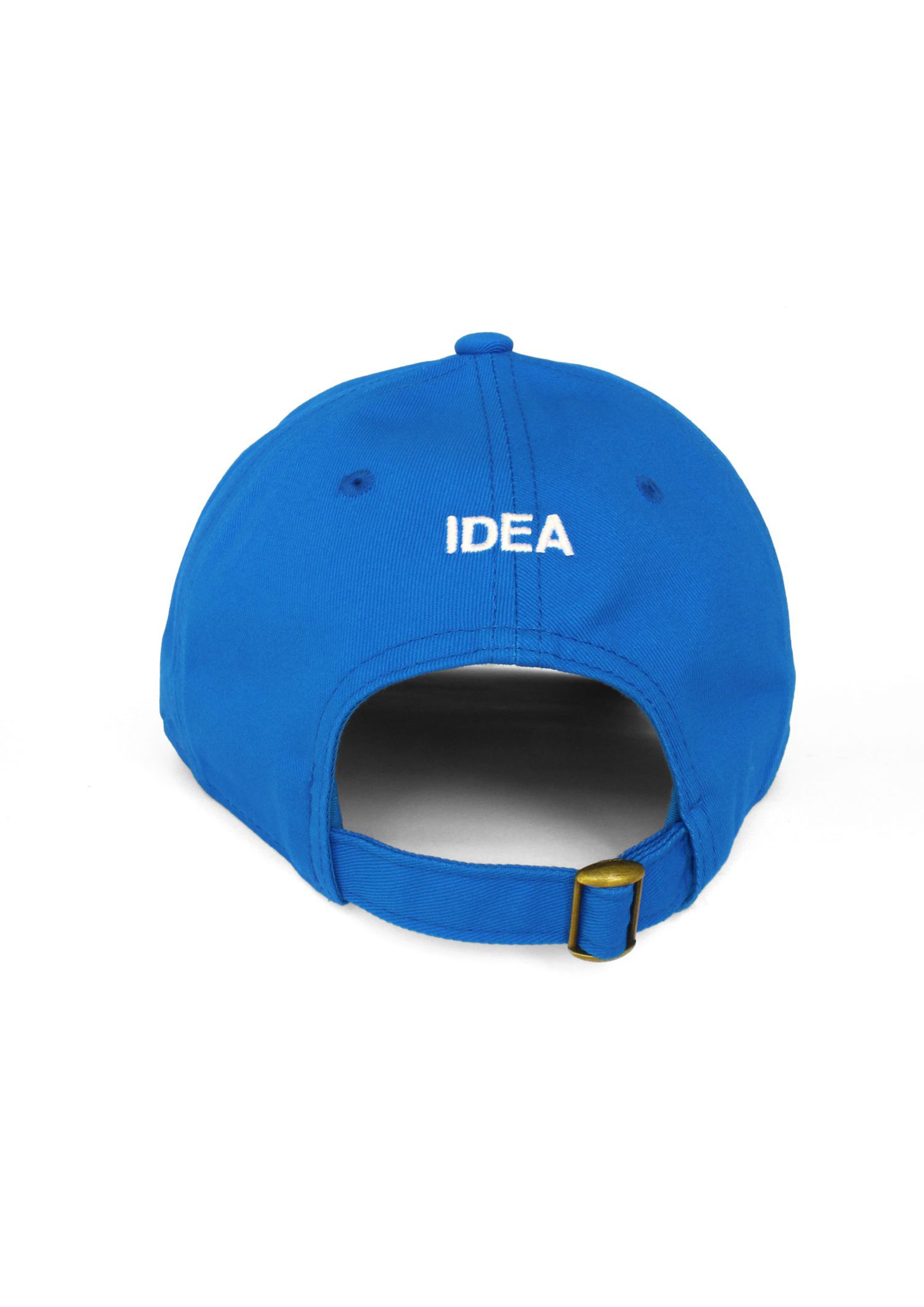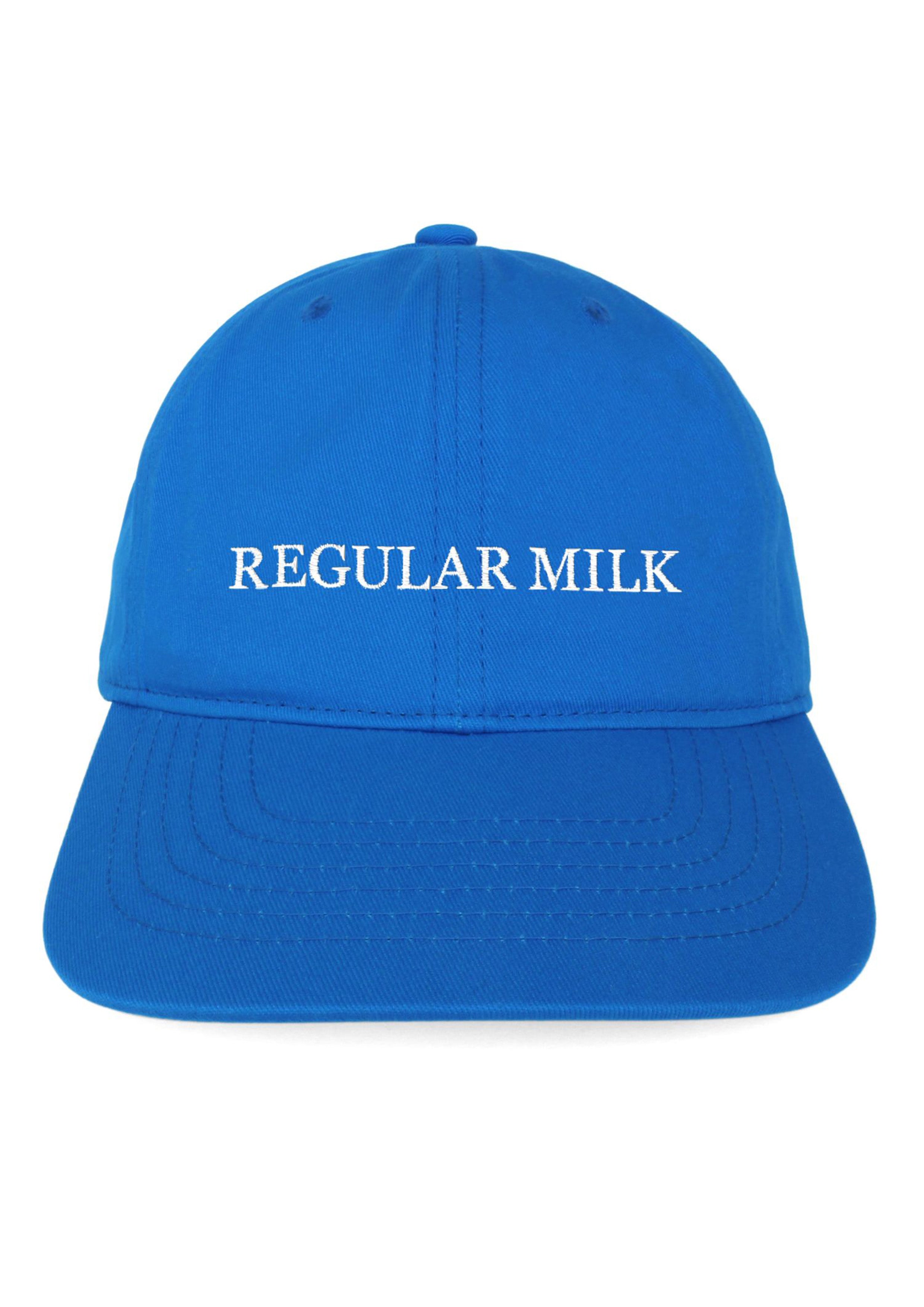 100% organic cotton IDEA hat. REGULAR MILK on the front. IDEA on the back. Organic blue cotton classic unstructured six panel hat. Eco conscious :)