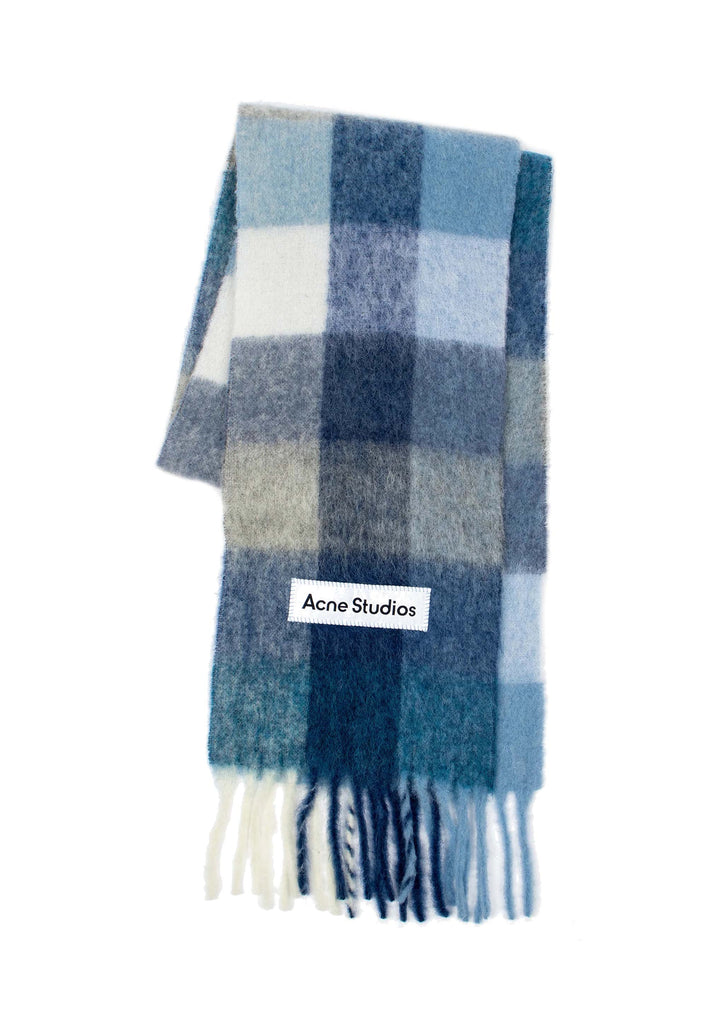ACNE STUDIOS - MOHAIR CHECKED SCARF INDIGO/GREY/LIGHT BLUE