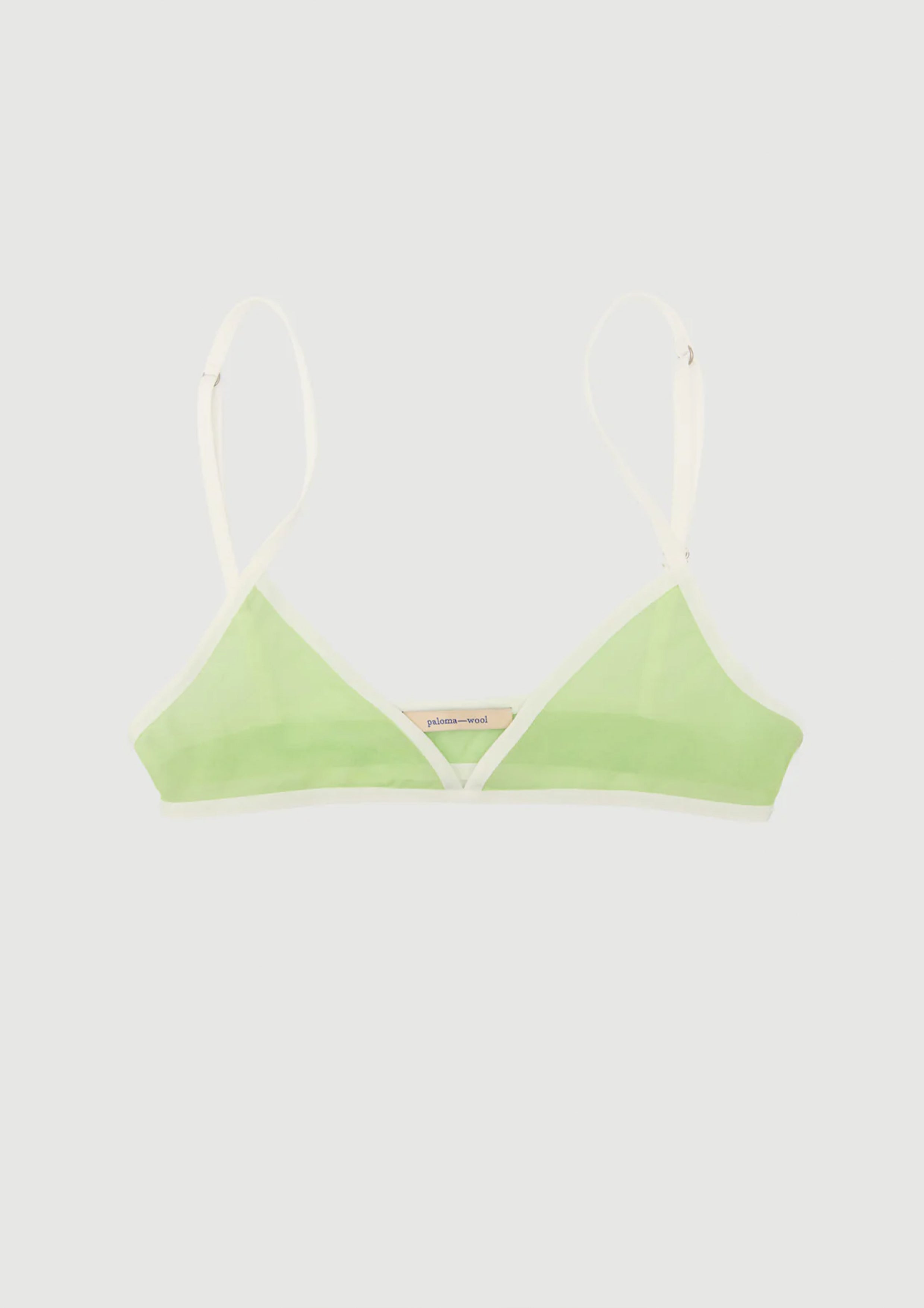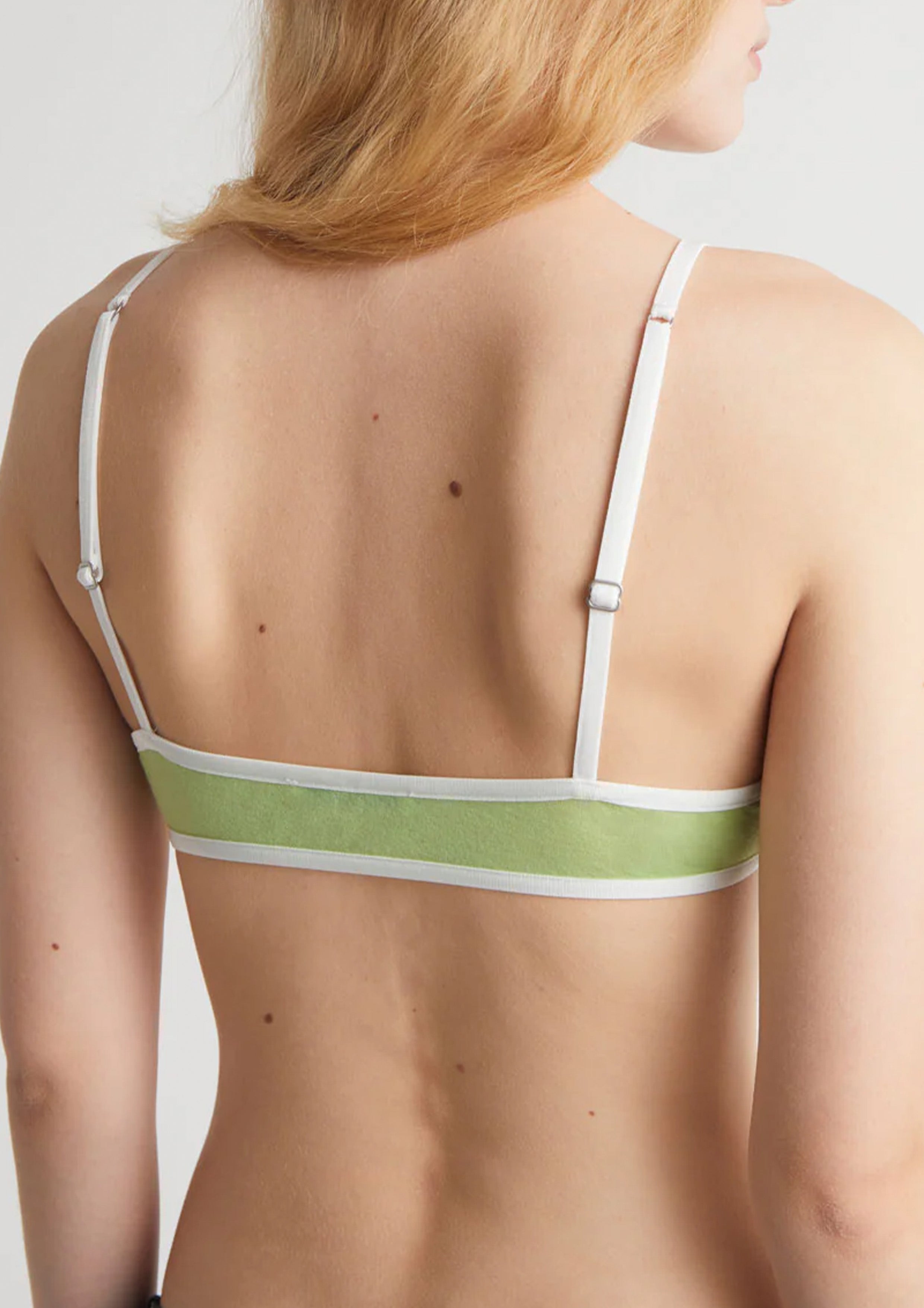 Strappy bralette with lingerie-style details, including adjustable straps with sliders. Made from lightweight, slightly sheer fabric.