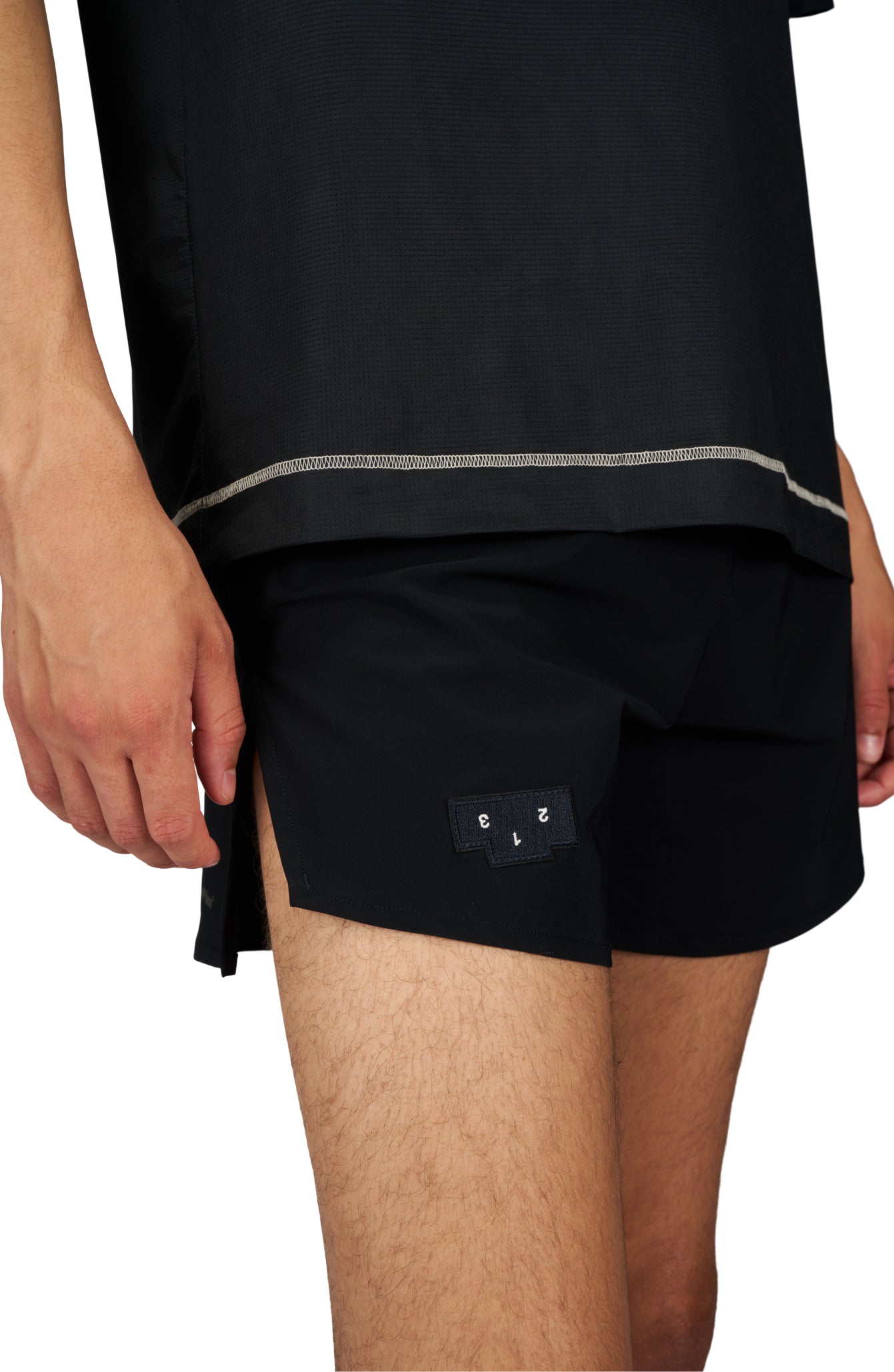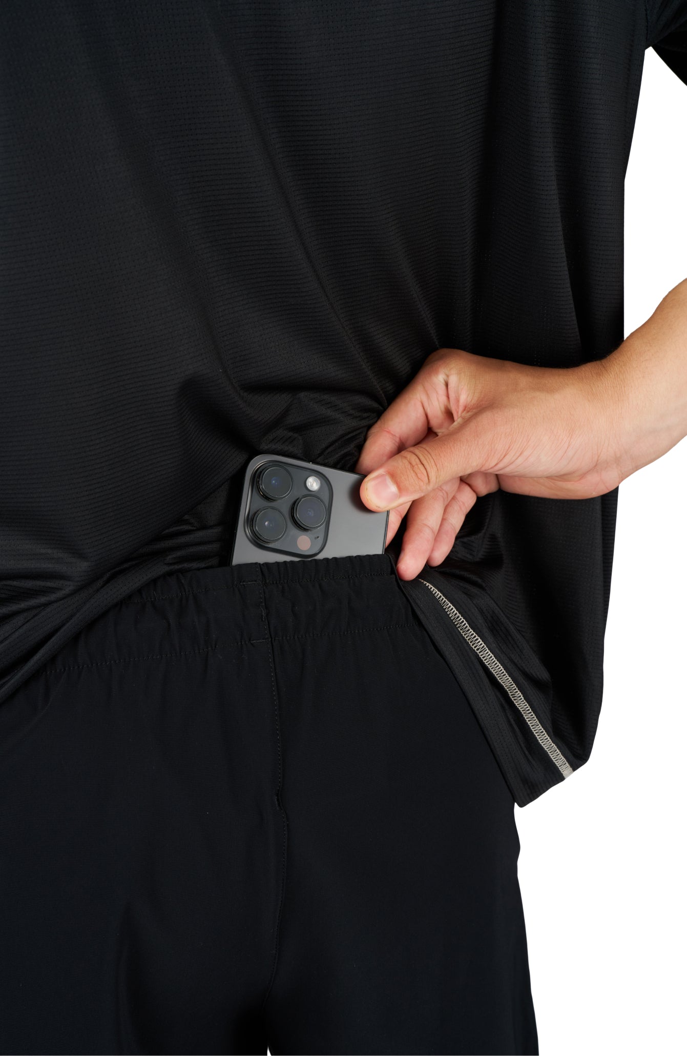- Men's running shorts in Black with a soft stretch and side vents. Podium Logo in the front and reflective "Finish in a Good Place" slogan on the back. Two smart hidden pockets on the inside to keep your phone and keys/headphones in place. Made in Econyl.